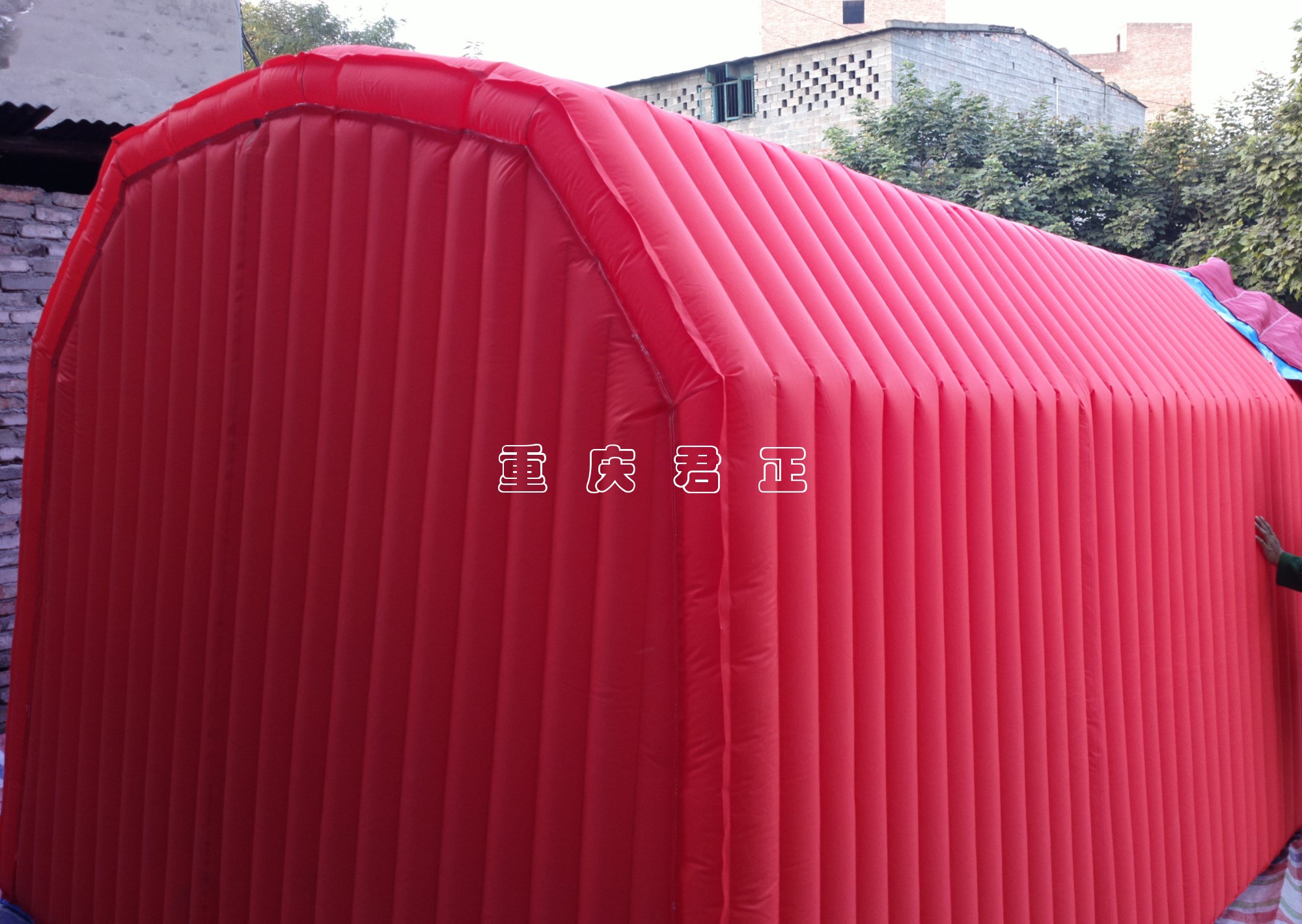 本車庫采用結構框架(充氣式)形式,框架采用PVC雙涂層高強復合布,蓬布采用PVC高強阻燃迷彩布,材料具有抗張強度高,剛性大,氣密性好,重量輕,抗風阻力小,防水、隔熱、抗寒、隔音性能好、安裝拆卸簡單、攜帶方便、外型設計美觀。廣泛適用于野營、野外施工、消防、救災、救險、旅行、游玩等多種環境。其他形式的同類產品與其無可媲美,深受廣大用戶的歡迎和好評。、主要功能:◇防潮濕、防蚊蟲、保溫、抗紅外線、阻燃等。◇備注:產品采用膠粘劑粘合與高頻熱合相結合的工藝生產,氣囊采用PVC涂層聚酯交織布,蓬布采用PVC單面涂層布。框架抗風6—8級,適用溫度-45+75,靜水壓≥16KPA,防地表水高度為160MM—200MM,充氣時間為2—8MIN效果好。