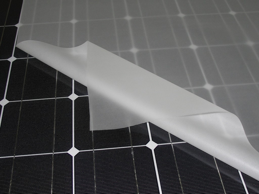 EVA一種熱固性有粘性的膠膜,用于放在夾膠玻璃中間(EVA是Polyethylene vinylacetate,聚乙烯-聚醋酸乙烯酯共聚物的簡稱)。 由于EVA膠膜在粘著力、耐久性、光學特性等方面具有的優越性,使得它被越來越廣泛的應用于電流組件以及各種光學產品。