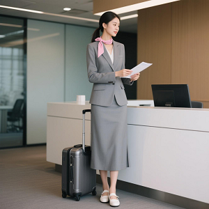 空乘:藍色制服或包臀裙,象征航空公司形象?